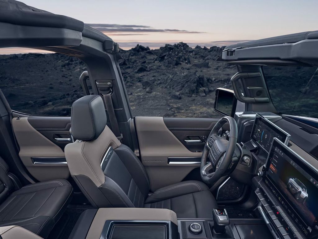 ومن الإضافات العملية المهمة في Hummer EV 2026 هي قدرتها على الشحن ثنائي الاتجاه (V2H و V2V). بمعنى آخر: يمكن أن تزود السيارة منزلاً بالكهرباء في حال انقطاع التيار الكهربائي، كما يمكنها شحن سيارة كهربائية أخرى في موقع مثل التخييم، مما يعزّز دورها العملي بعيداً عن كونها مجرد مركبة فاخرة.