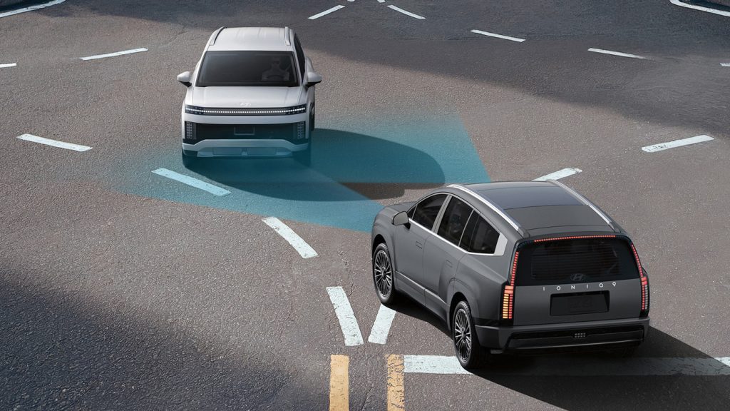 تضم IONIQ 9 أحدث أنظمة الأمان والمساعدة على القيادة من هيونداي، مثل نظام Highway Driving Assist 2 للقيادة شبه الذاتية، ونظام المساعدة على تفادي التصادم الأمامي، ومراقبة النقاط العمياء بالكاميرات.